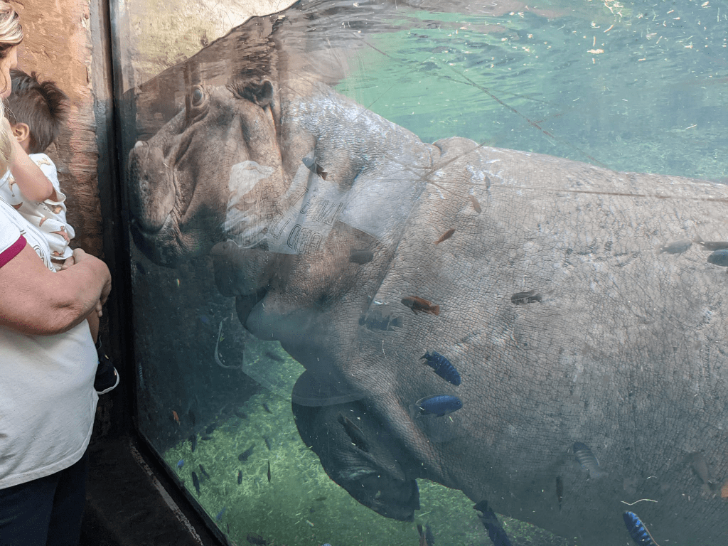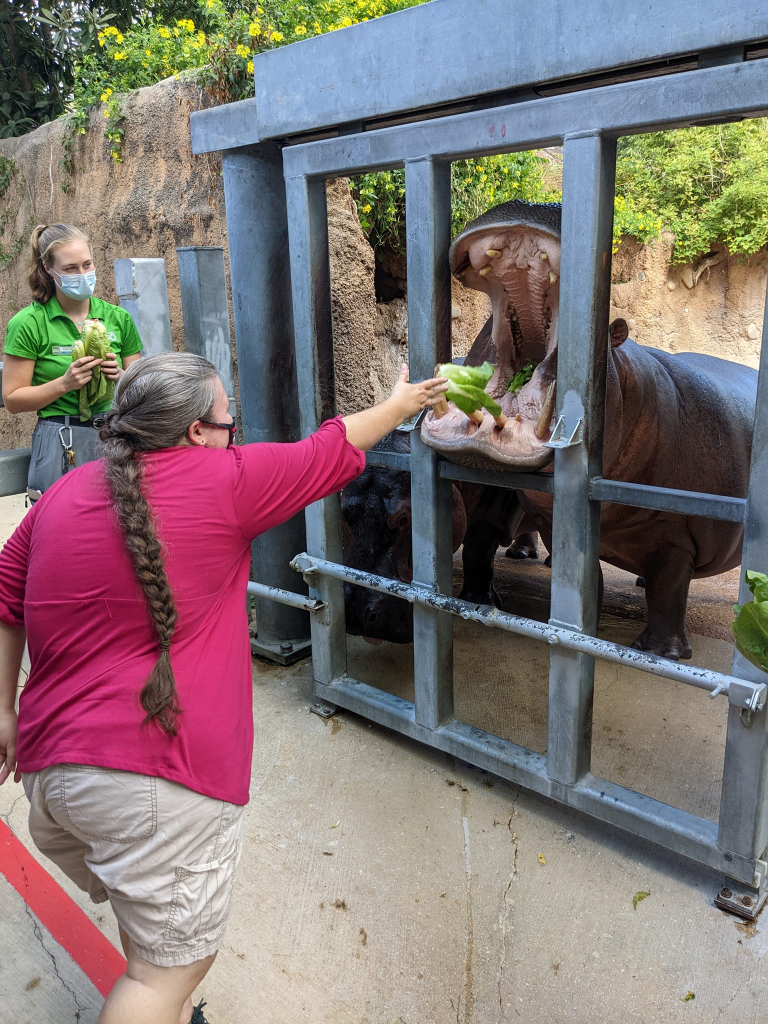 My two favorite zoo animals are giraffes and hippos. Unfortunately, the Houston Zoo hasn’t had full sized hippos in many years, so I took this opportunity in San Antonio to do the behind the scenes tour with Uma and Timothy the hippos.