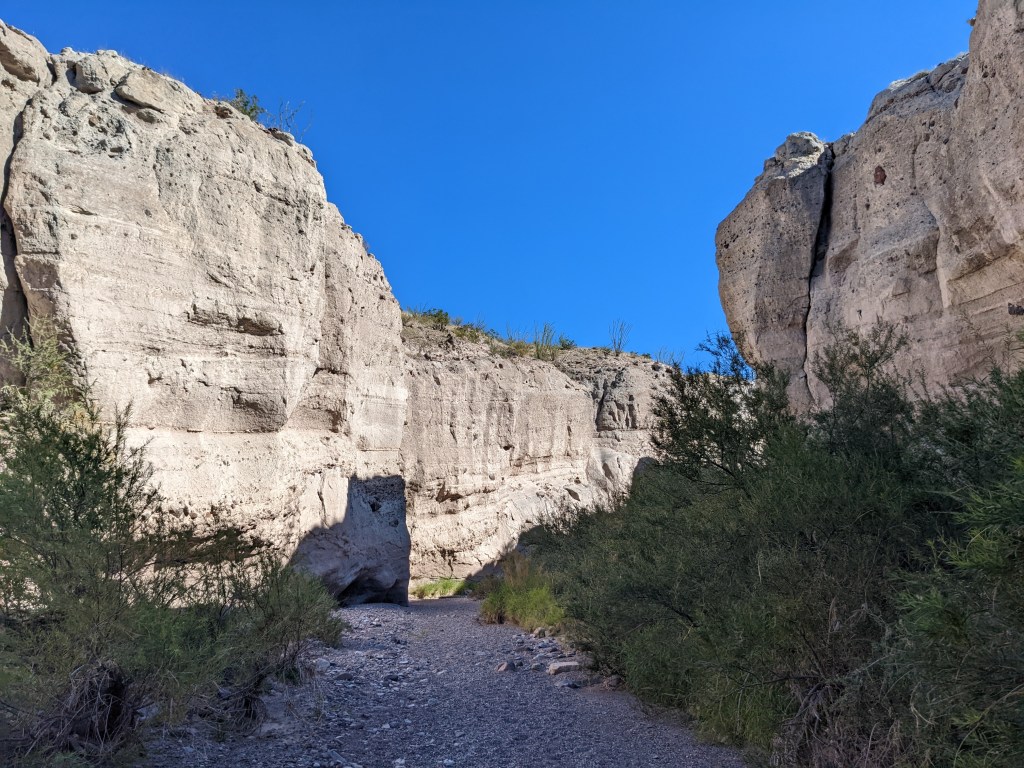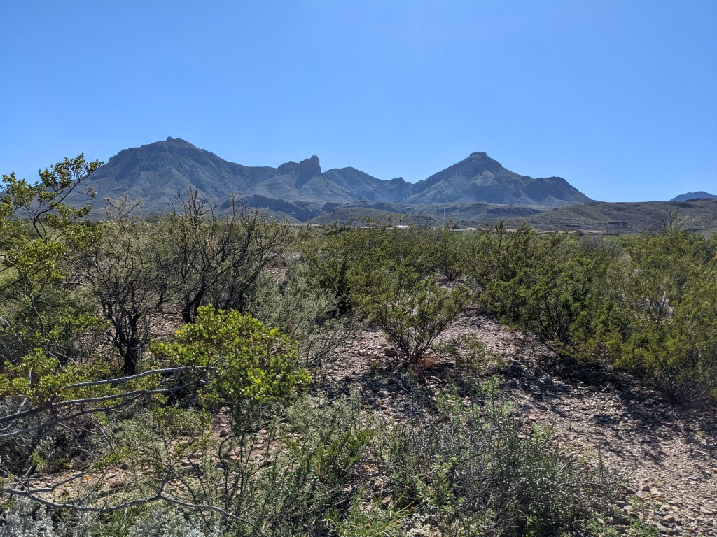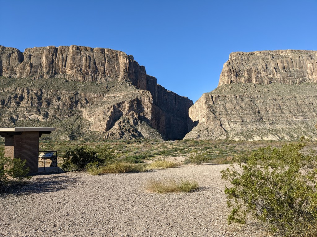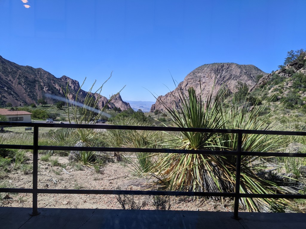 In Big Bend, I had the opportunity to visit the Chisos Basin (an amazing high-altitude oasis in the middle of the desert), Santa Elena Canyon (though I couldn’t hike into it because the creek was too high), and a slot canyon (where I could hike down to the bottom and look up at the steep walls). All beautiful in their austere desert way.