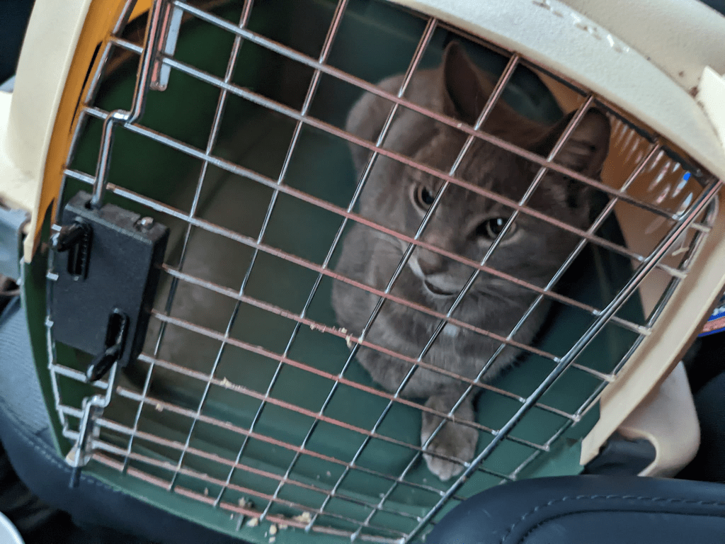 Miracles never cease. Someone sent me a picture of a stray gray tabby hanging out just outside the radius I had searched in San Antonio. I couldn’t tell from the pictures whether it was Peter or not, because unfortunately one plain gray tabby looks a lot like another unless you can see them in person and how they act. But I drove to San Antonio just on the chance, and amazingly, it WAS Peter. He clearly had missed me, but also didn’t want to get back in the car, so it took a while to get him in his crate. Now he’s not pleased with me at all, oh no precious. But he’s safe and going home. I just need to figure out where “home” is going to be for him now. Pray I can make wise decisions for him for the future. And thanks SO much to everyone who prayed for him and for me!