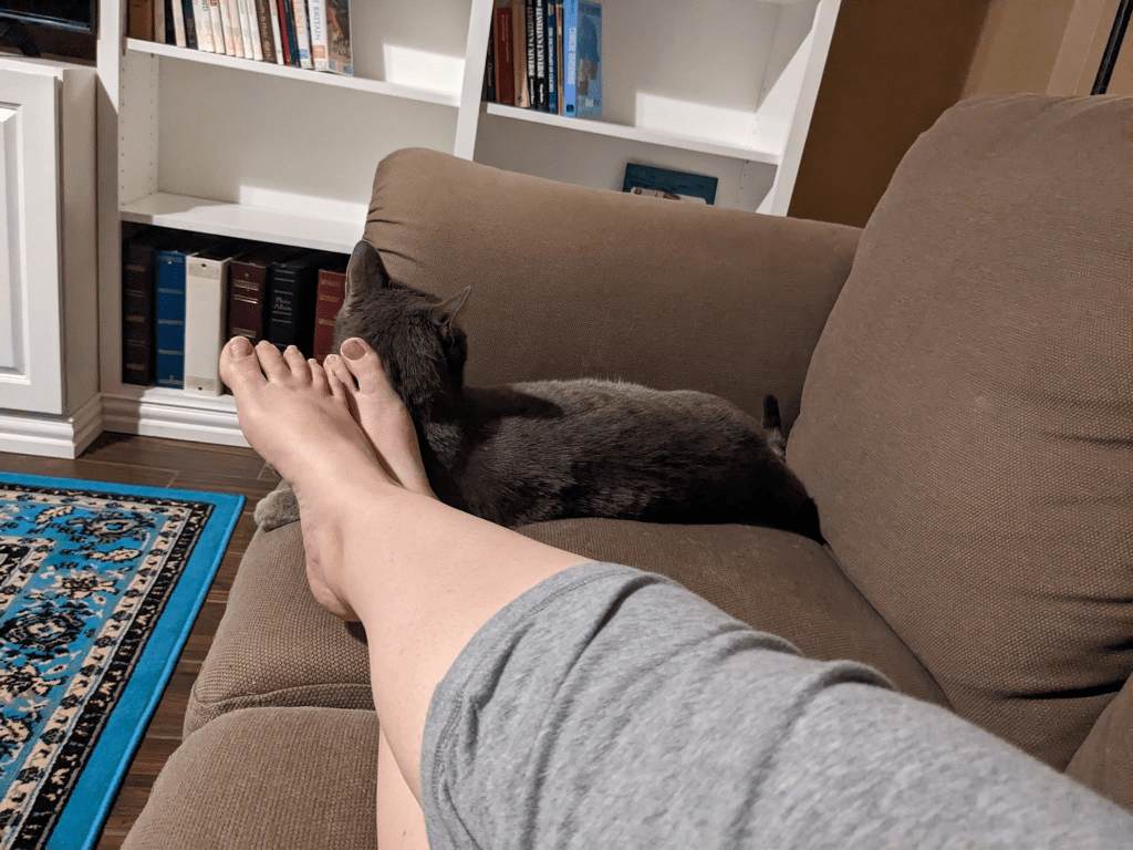 I’m staying with my parents this week while I get some work done on my RV, and decided to keep Peter with me while I’m here. He was not very pleased about being abducted from Margaret’s house, and he stayed in hiding till my parents went to bed, but now he’s cuddling with me like old times. It’s good to be together again.