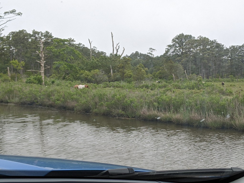 I headed back to Lynchburg, picked up my RV, and drove on to Thousand Trails Virginia Landing near the southern end of the DelMarVa peninsula. That was my first time crossing the Chesapeake Bay Bridge and Tunnel, and it was quite the experience in an RV. The campground was pretty, right on the water, but didn’t have much cell signal, so my Starlink came in handy for the first time. I stopped there specifically so I could revisit Chincoteague and Assateauge Islands, from my childhood love of horses and the Misty of Chincoteague books. We went there on a family vacation on my ninth birthday and it was magical. We visited the Beebe Ranch and saw Misty’s descendants, including her daughter Stormy (who was already a pretty old horse by then in the late 1980s), and saw a band of wild horses up close on Assateague.