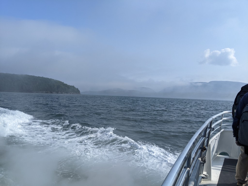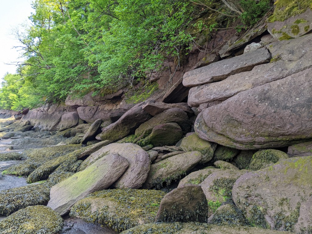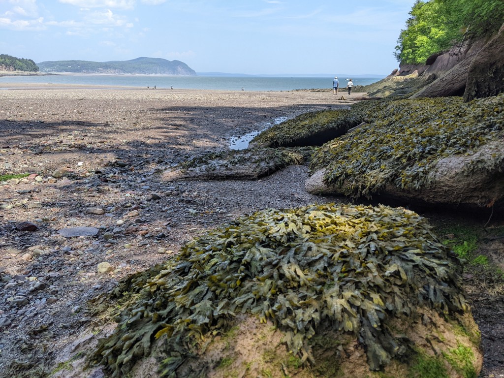 But I’m glad I came here to Fundy National Park. It’s similar in some ways to Acadia, but I think the forest inclines a little more to fir trees here (though both parks are a mixture of conifers and deciduous trees). Fundy’s main claim to fame is that the bay has the most extreme high tides of any place on earth, rising as much as 16 meters from low tide (the height of a four-story building). There are complicated scientific reasons for this, related to the shape of the bay and its natural resonance frequency compared to tidal frequency… I about half understand it, but you can read all about it here: https://www.bayoffundy.com/about/highest-tides/