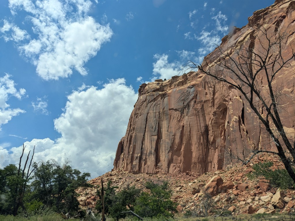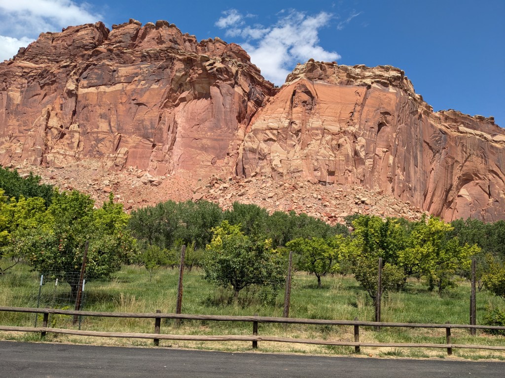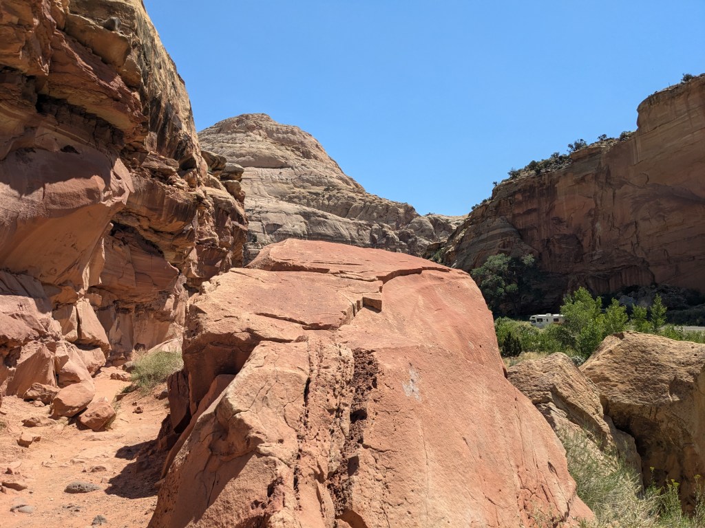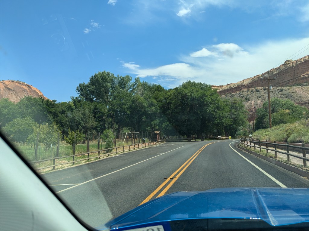 On Saturday, I made my first national park visit from my new base at Camp Lutherwood. Capitol Reef National Park is actually almost exactly halfway in between my old site at Dead Horse Point State Park and the new one (I passed it on the way), but timing-wise, it worked out better for me to double back and visit it on the weekend – a 2.5 hour drive each way.