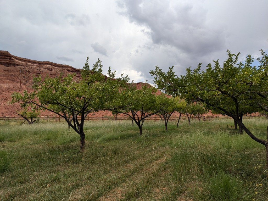 I rounded off my trip with a visit to the orchards. The National Park Service maintains them with their heirloom fruit varieties using the same irrigation ditches dug by the original settlers. And they are open to the public for U-Pick-Em harvesting.