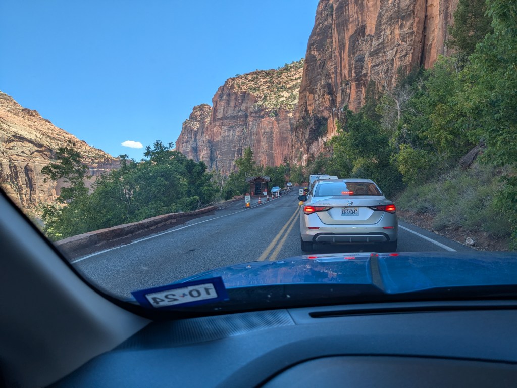 I will say that I think Zion was wise to implement the shuttle system. I can only imagine what a madhouse Zion Scenic Drive would be with those crowds all driving on it; you’d hardly be able to see the scenery. But they REALLY need to build a parking garage or something to accommodate everybody, or else implement a reservation system like other parks have done. That traffic jam is madness.