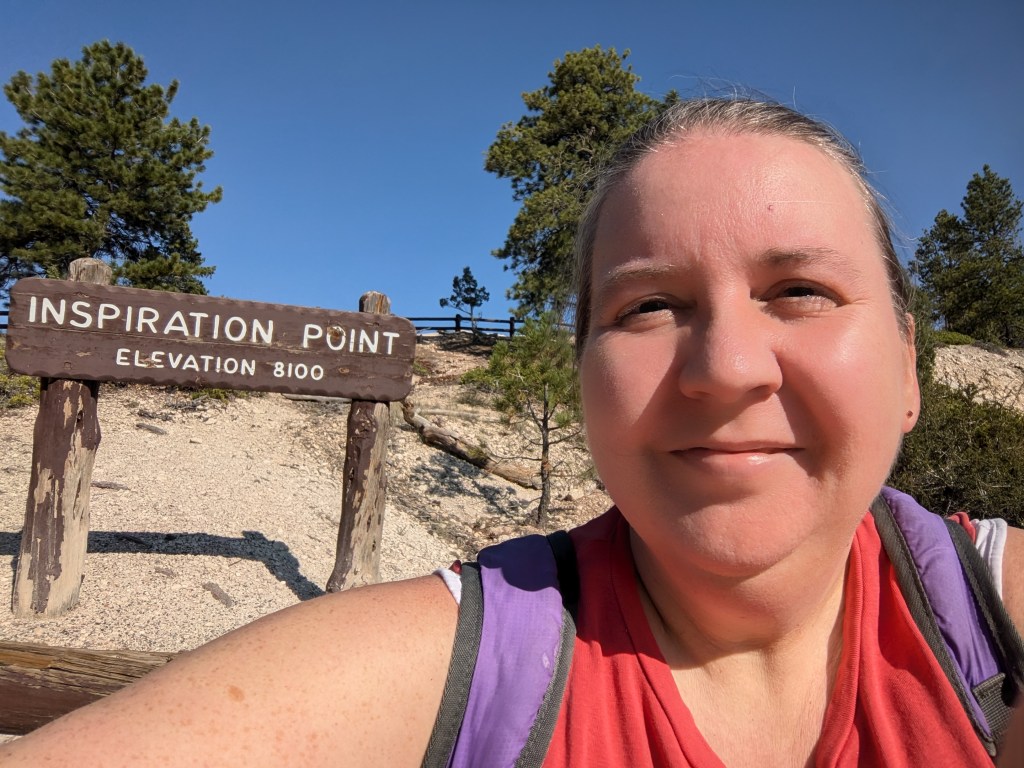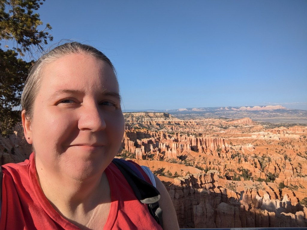 One complicating factor was that I wasn’t feeling very well. I’ve had a lot of nasal congestion since I got to southern Colorado…. I think I may actually be allergic to the desert, or maybe it’s just the super-dry air. But the day before my Bryce visit (Friday, August 16) the congestion got worse and started to feel like a sinus infection. Those things make me miserable and also make me nauseated from too much mucus (sorry for TMI). So I wasn’t feeling my sharpest when my alarm went off Saturday morning, but I was determined to go anyway.