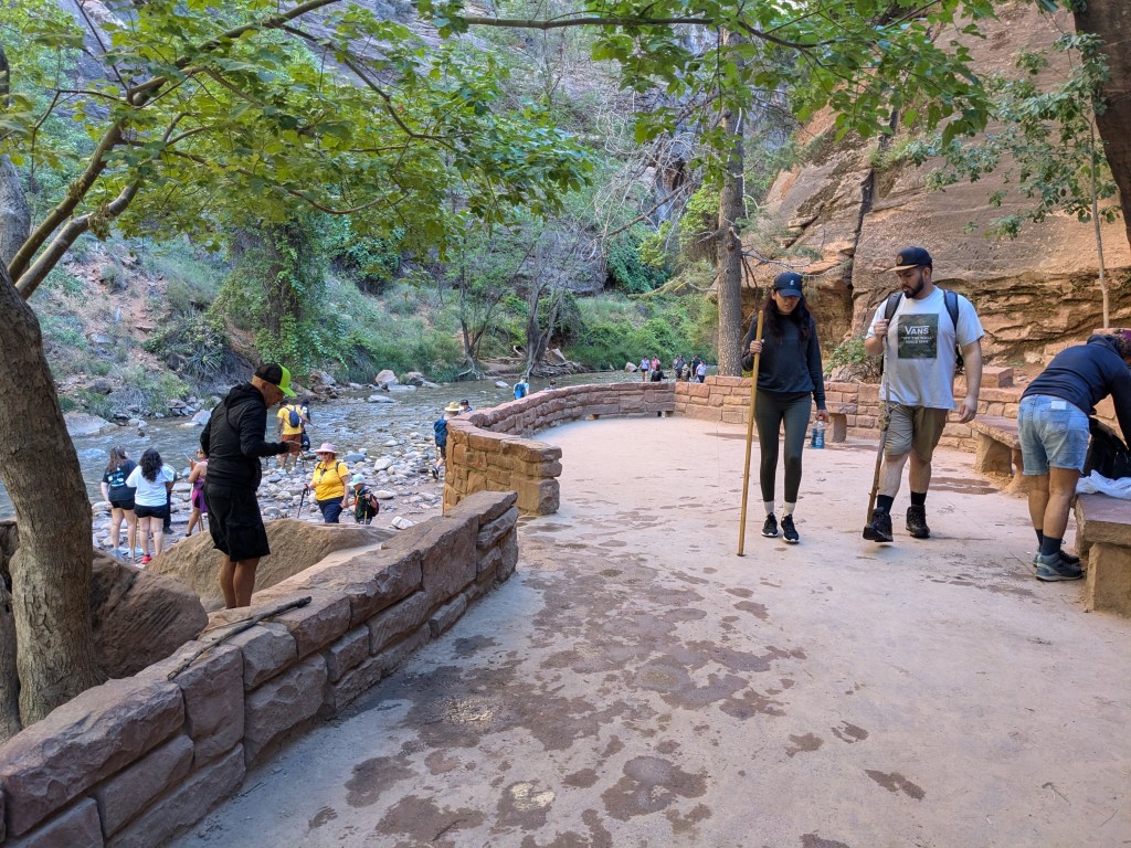 This time I did finally manage to secure a parking spot by parking at a pull-out a quarter mile up the highway from the start of the closed-to-public-traffic Scenic Drive. I walked back down the highway and caught a shuttle, first back to the Visitor’s Center, and then back along the whole length of the Scenic Drive to the area known as the Temple of Sinawava.