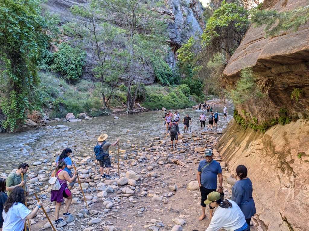 By the time I boarded another shuttle to leave, the temperature was climbing into the upper 90s F, the buses were getting crowded to standing-room-only, and I wasn’t at all tempted to stay longer. But I’m so glad I went back for one more visit to Zion. It was the perfect capstone to my Utah travels.