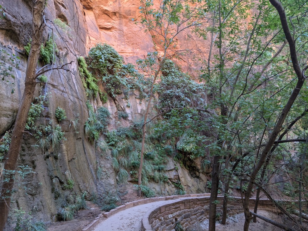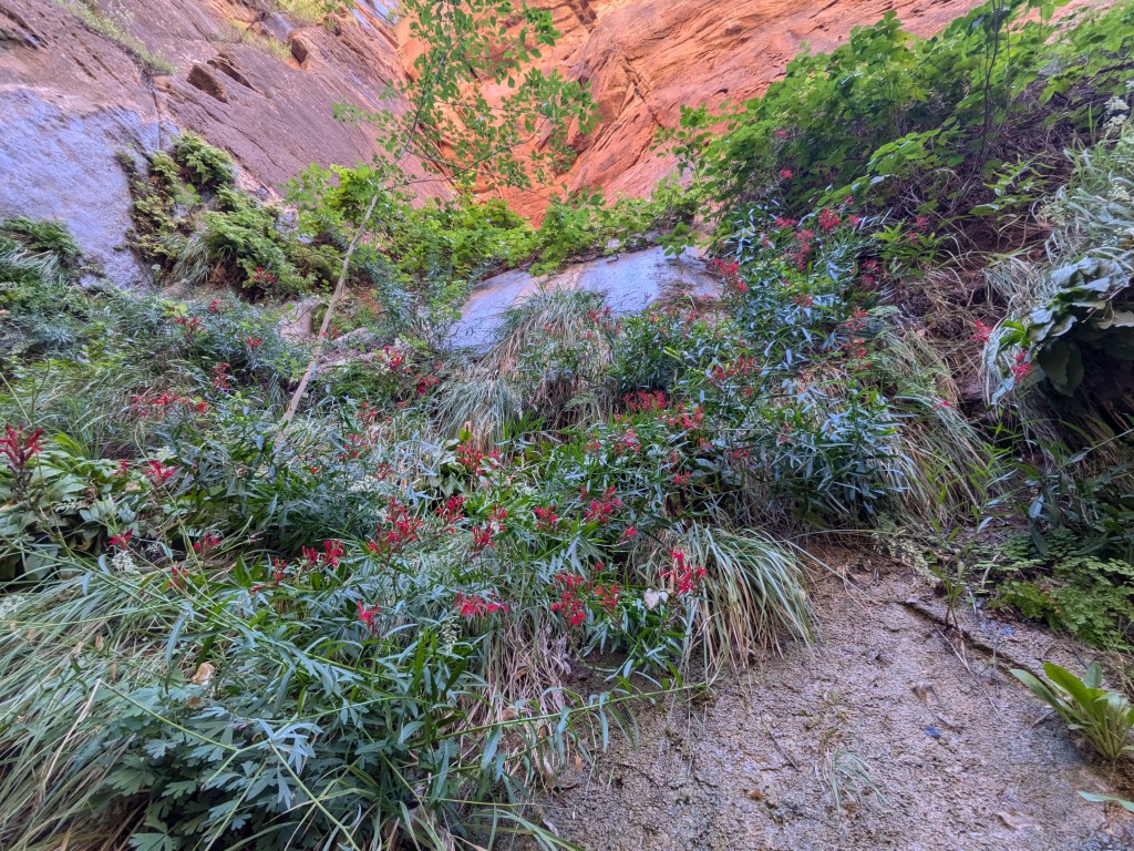 The river chattered along beside it. Apart from the sheer red rock walls, it didn’t feel like a place in the desert, and in fact some of the flora along the canyon floor is actually adapted for swamp life.