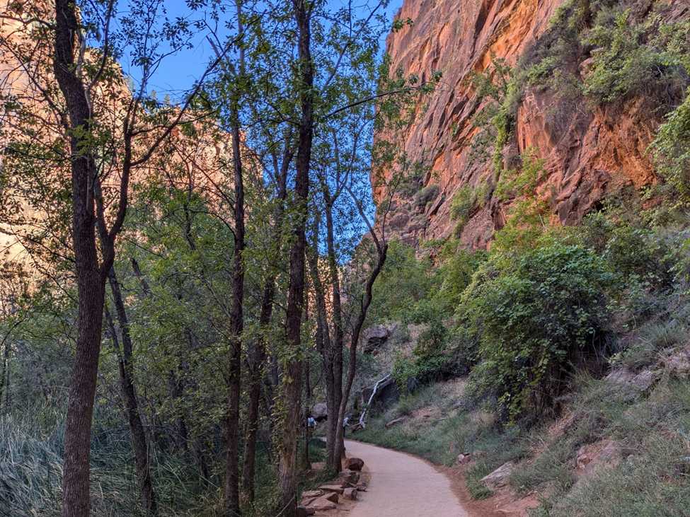 But the weather for the morning was clear blue sky. And nearly all of the trail was in the shadow of the eastern canyon wall, making it pleasantly shady.