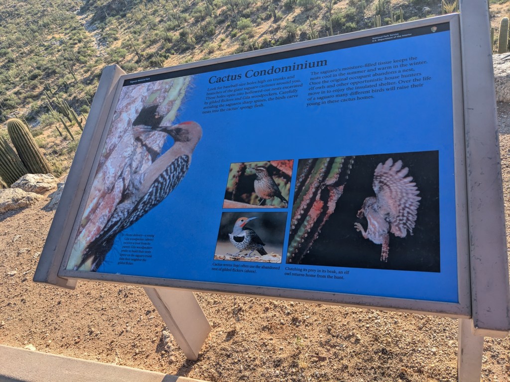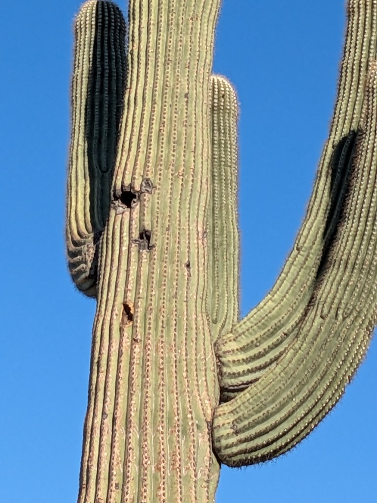 I was especially interested to learn about the species of birds (including one woodpecker) that drill holes in saguaros and make their nest cavities there.