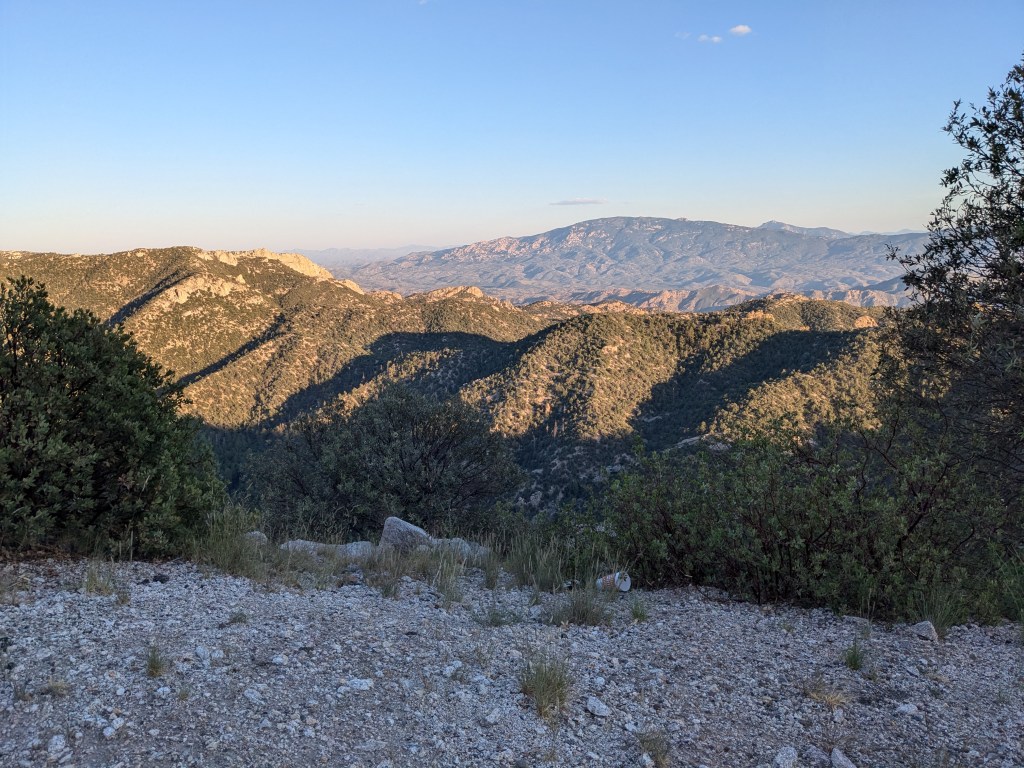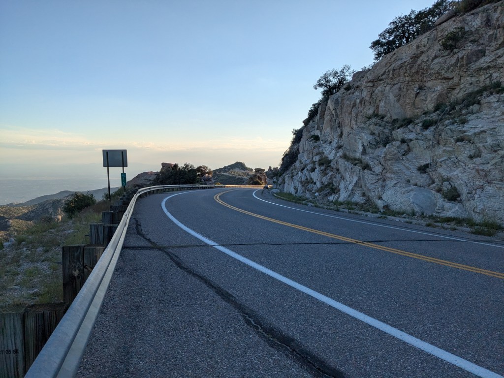 Later in the day, I took that advice. I should mention that I am “moochdocking” here in Tucson in someone’s front yard. I belong to a website called “Boondockers Welcome” where people generously offer up spots like that to RVers for free for a night or two, so the Gordon family has given me a place to park and let me plug in my RV to 15-amp power via extension cord. I’m extremely grateful for the free spot. But my RV normally runs on 30 amps of power and I don’t dare try to run my main air conditioner on 15. I have a portable AC that runs on 7 amps, which works great at night. But I found that it couldn’t cope at all with the 102F (39C) midday temperatures. After sweltering for a while, driving up into the mountains sounded like a good idea, so I went. Going up from 3,000 feet to 8,000 feet dropped the temperature from 100F to 64F, and changed the scenery from stands of saguaro to ponderosa pine. It was really an amazing contrast.