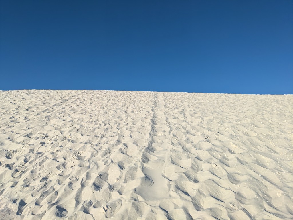 White Dunes is actually pretty wet for a desert — you can’t see the water, but a high water table just under the surface is what holds all that ultra-fine sand together. It supports a lot of wildlife, too, but most of the sensible creatures only comes out at night, so the most you can hope to see during the day is footprints.