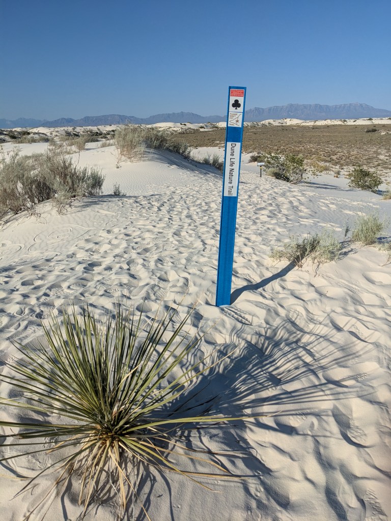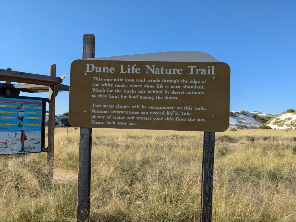 The park preserves a good bit of the dune field, but not all of it. White Sands Missile Range (best known as the original test site of the atomic bomb) wraps around much of the park and is still in use by the US military to test various explosive weapons. In fact, all the public information for the park warns visitors not to touch any metal debris they find, and to notify a ranger, because it may be unexploded ordinance. Boeing’s ill-fated Starliner capsule also landed there just a few days ago. (I’m kind of sorry I wasn’t here to see that!). Ironically, the fact that it’s “in the middle of nowhere” makes it a happening place.