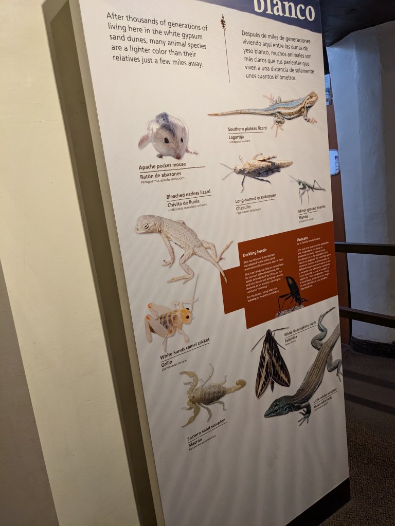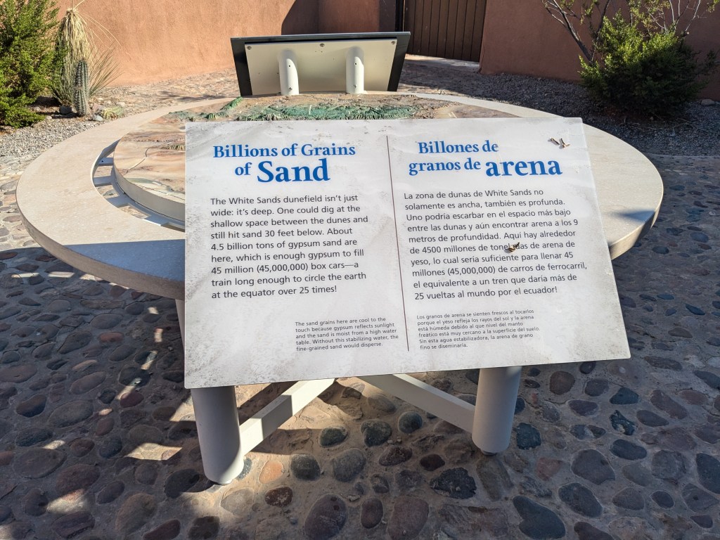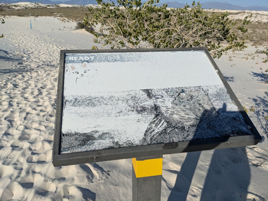 White Sands is the second-newest national park in the system (surpassed only by New River Gorge in West Virginia); it became a national monument in 1933, but only became a national park in 2019. Given the glacial pace at which the federal government moves, they still haven’t replaced the highway signs or a lot of the interpretive signage in the park, although the ranger at the Visitor’s Center said that everything has been approved now and they’re just about to start putting things up.