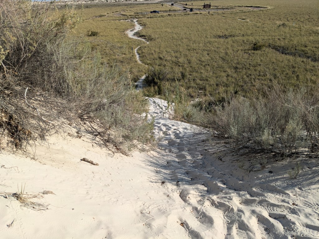 Climbing back down off the dune was pretty steep and that part of the trail wasn’t well marked, but I followed the myriad footprints back down to the level of the road.