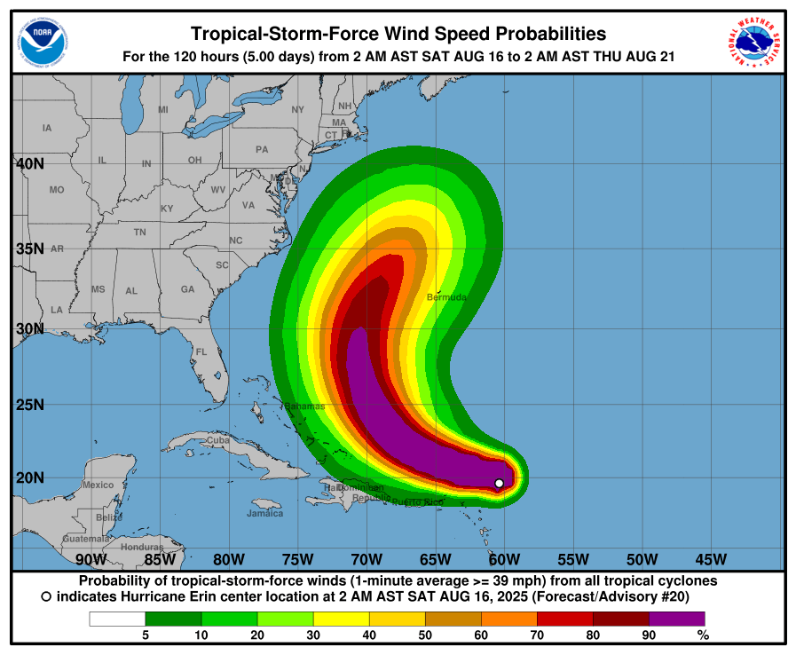 If you haven’t been watching the news, Hurricane Erin has spun up “explosively” to a Category 4 in the Atlantic right now: